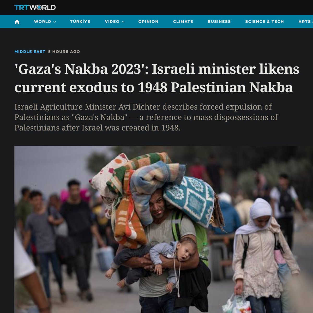 - (18) Uncaptured News on X: “Avi Dichter, Israeli Minister of Agriculture and Rural Development: “We are now rolling out the Nakba of Gaza.” https://t.co/IbXV1UskL6″ / X