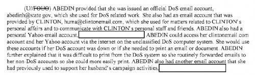 Another curious discovery is the admission the Huma Abedin may have forward most if not all of her internal emails to her Yahoo email account “if she needed to print an email or document.” In light of the recent revelation that half a billion Yahoo user accounts have been hacked definitively as of 2014 – and perhaps sooner – a quick scan through the dark web may reveal countless state department emails floating around in the hacked cloud, some perhaps originating from the president himself.