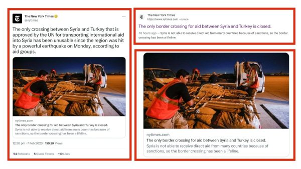 When the earthquake happened, the Western media quickly went to work in order to try and justify the brutal sanctions, in an attempt to address the calls of the Syrian government to lift them. Although, in the case of The New York Times, a piece was published on February 7, which was entitled “The only border crossing for aid between Syria and Turkey is closed”, the subheading of this article read “Syria is not able to receive direct aid from many countries because of sanctions, so the border crossing has been a lifeline”. The following day it was noted on social media that the title and subheading was changed in order to blame the Syrian government for not allowing the passage of aid, sanctions were no longer mentioned. This is not just dishonest journalism, it’s propaganda.